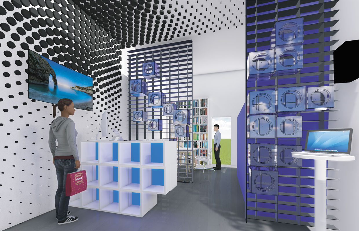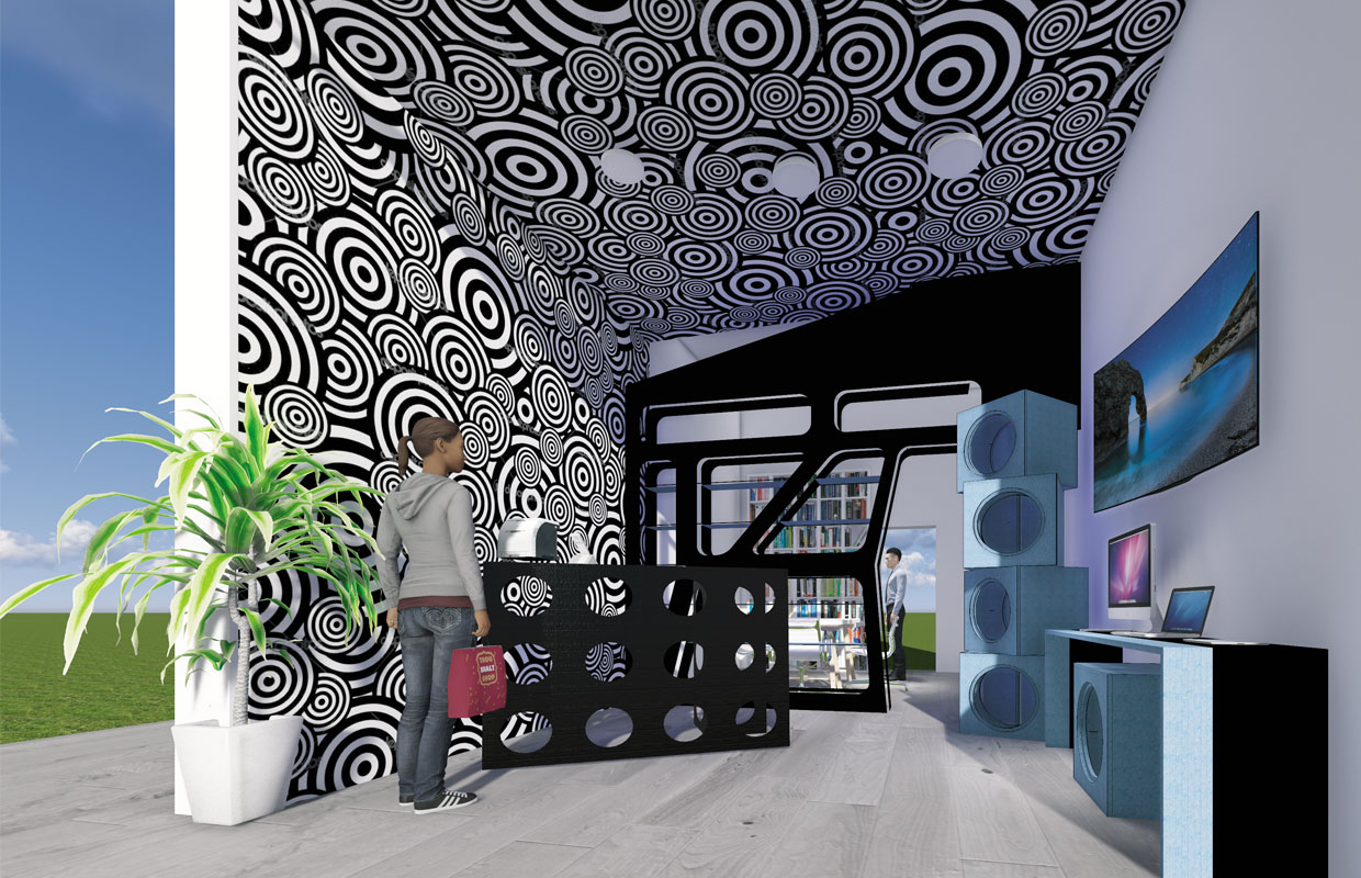 L’idea del committente era quella di creare un ambiente originale e d’impatto, chiedendo la realizzazione di contenitori espositivi adatti al tipo di prodotti presenti nel negozio.
